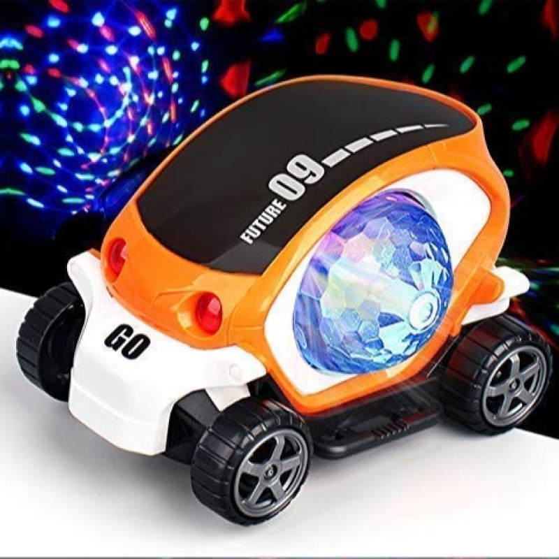• ROTATES 360 DEGREE Car Bump and Go Toy with 3D Lights, Dancing Toy, Battery Operated Toy - ( battery not included )Assorted Color