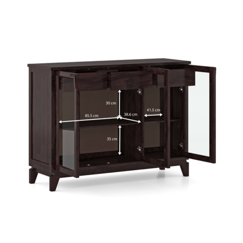 • You call it a cabinet, we call it the perfect display. The Akira features a sleek glass front, held together by warm sheesham wood. The perfect home for your museum-worthy china, it also doubles as a serving station.