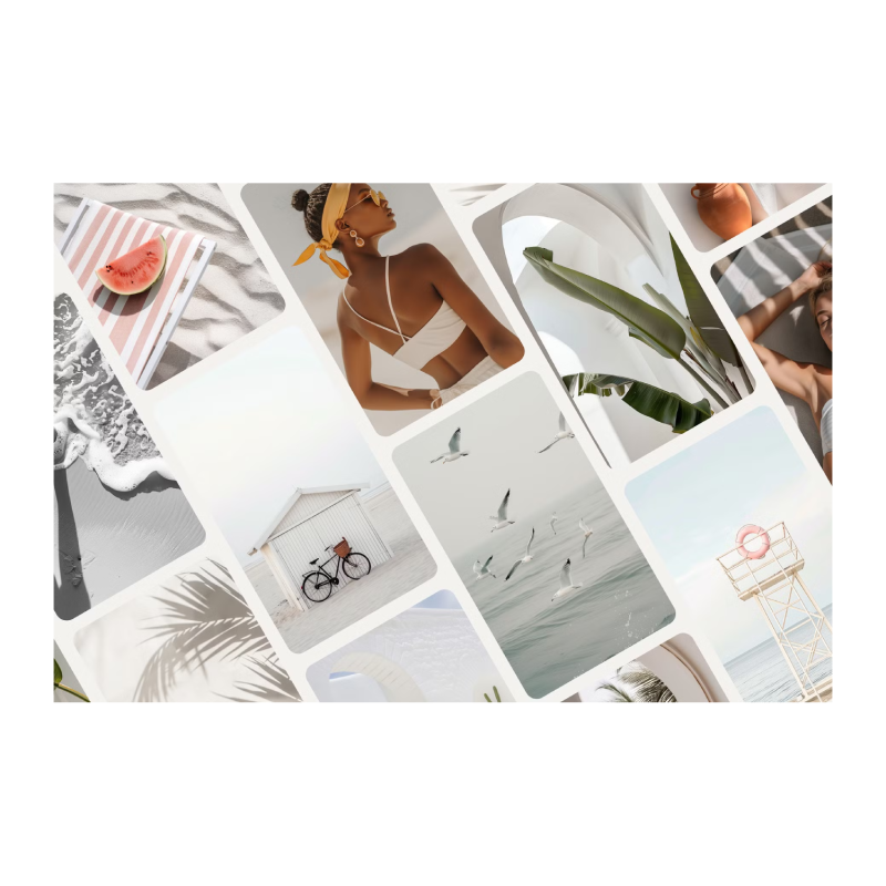 This collection of stock photos captures the atmosphere of the beach and summer holidays, presenting calm shades and a relaxed environment. Each image conveys a sense of peace and the freshness of the sea breeze, embodying the perfect beach day. Created using the latest stunning AI technologies and hand-crafted.