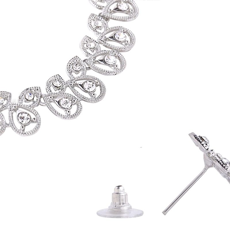 • This silver plated crystal studded choker jewellery set for women comes with a unique design that suits any of your outfit. Our Product is perfect for valentines Anniversary Birthday gift for Women,girlfriend,Wife.