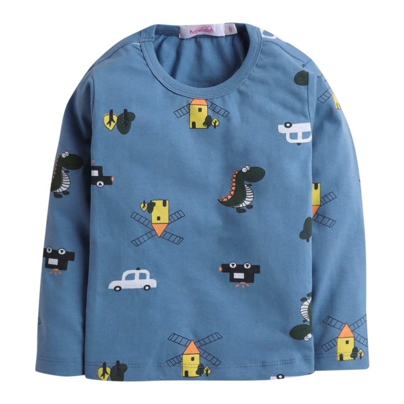 Hopscotch Boy's Cotton Graphic Print Top and Pajama Set