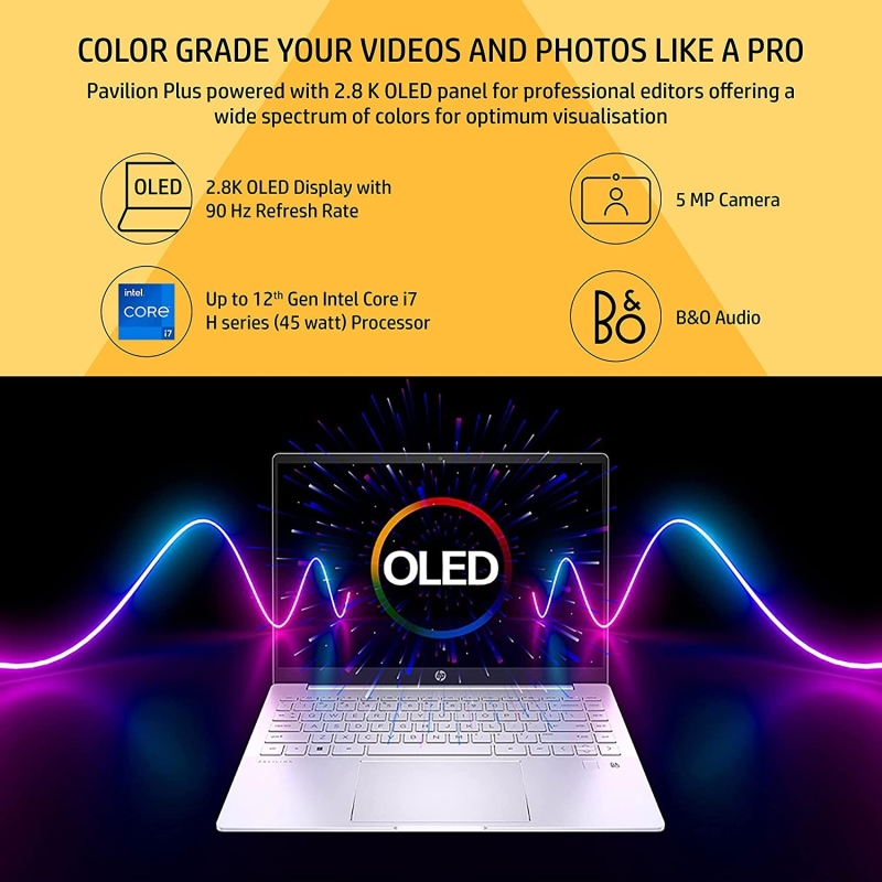 • Display & Graphics: 35.6 cm (14") diagonal, 2.8K, OLED, 90 Hz, UWVA, micro-edge, BrightView, Low Blue Light, 400 nits, HDR Brightness: 500 nits 243 ppi, 2880 x 1800, TUV Certified eye safe display |Graphics: Intel Iris Xe Graphics