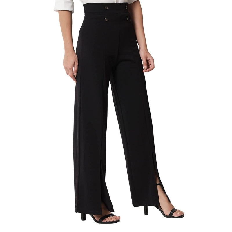 KOTTY Women Regular Length Jade Black Solid Trousers