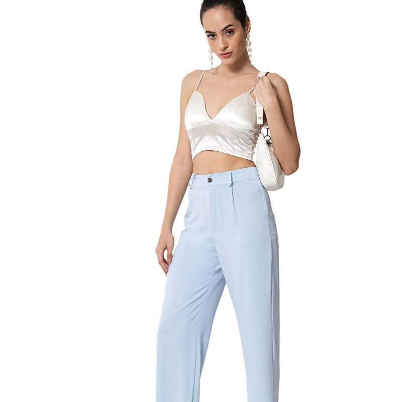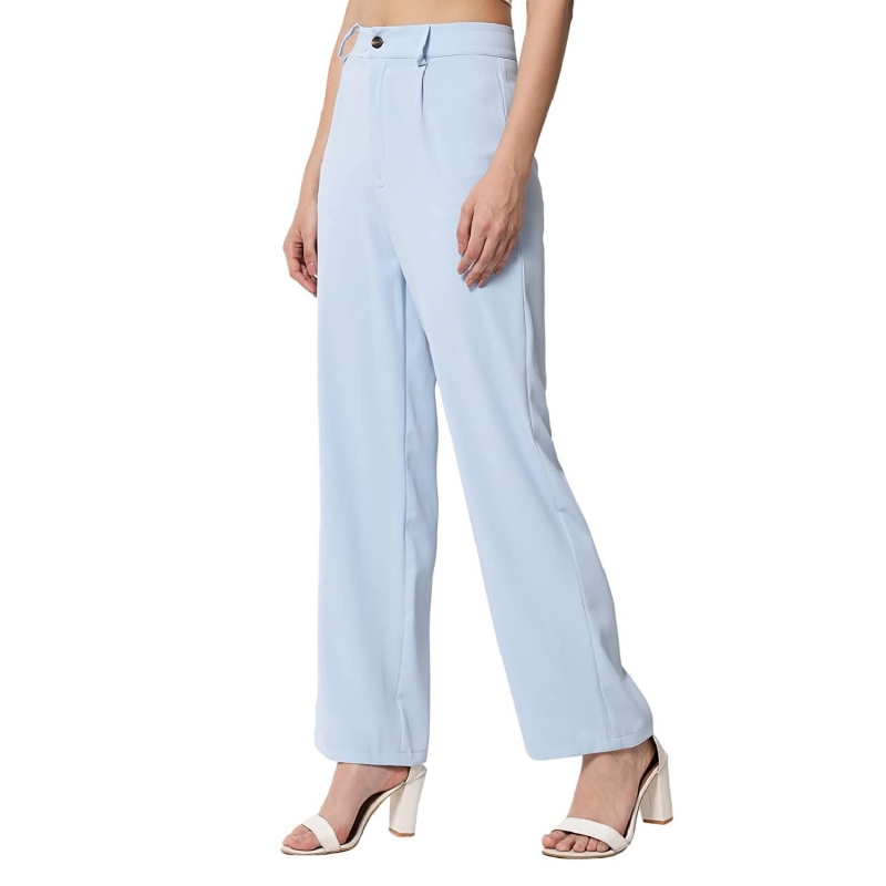 KOTTY Women Solid Polyester Blend Light Blue Trouser