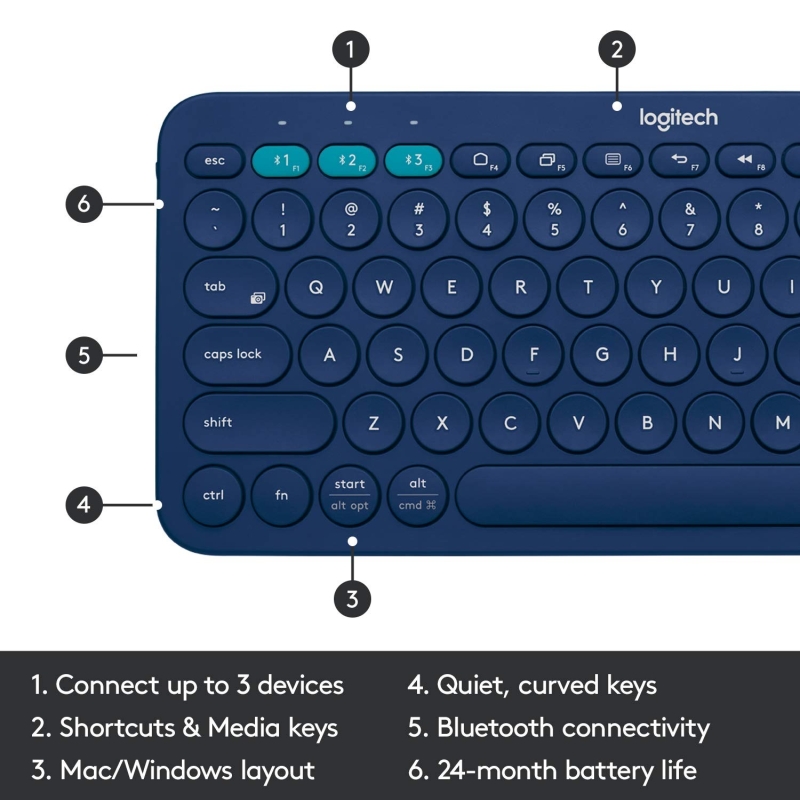 • Multi-Device Connectivity: Pair up to 3 wireless devices at once with the simple touch of an Easy-Switch button; easy-Switch lets you connect any Bluetooth device that supports an external keyboard.
