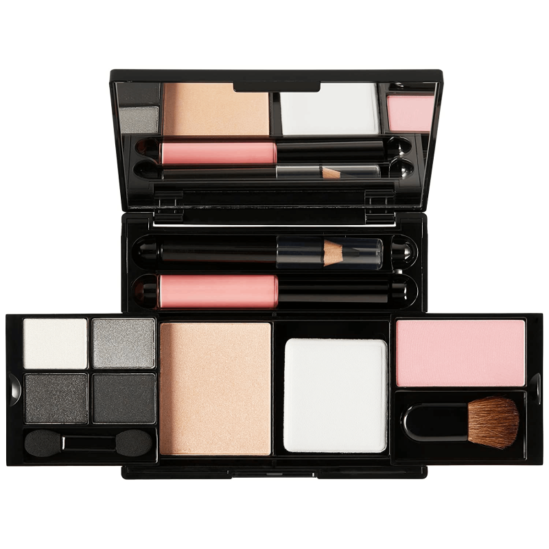 • A makeup kit featuring eye shadows and liner, blush, highlighter, and lip coluor - everything you need to go from subtle to smoldering in one sweep