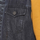 Men Charcoal Mustard Washed Colourblocked Windcheater Denim Jacket