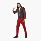 • Maroon and Black colourblocked jacket, has a hooded, 2 pockets, zip closure, long sleeves, straight hem, and polyester lining.