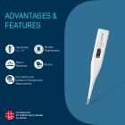 • 3-digit, + degree celcius (degree fahrenheit) display in 0.1 degree increment, beeps when measurement is completed.Flexible Tip : No