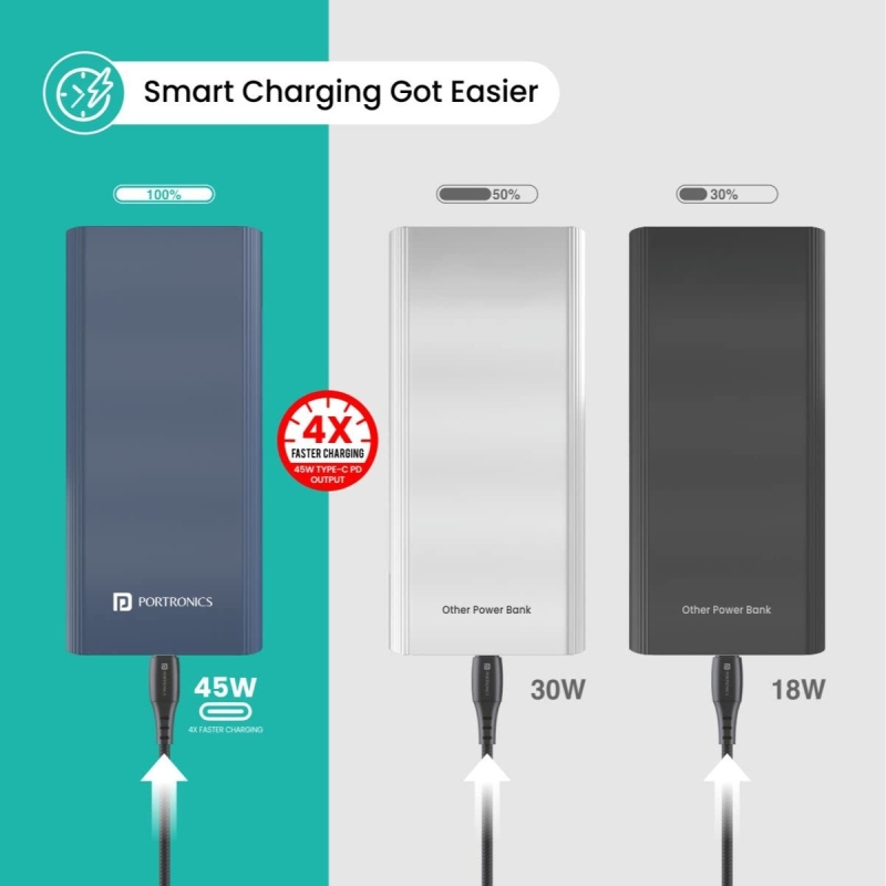 Portronics Power 45 20000mAh Power Bank for Laptop/Mobile with 45W Fast Charging