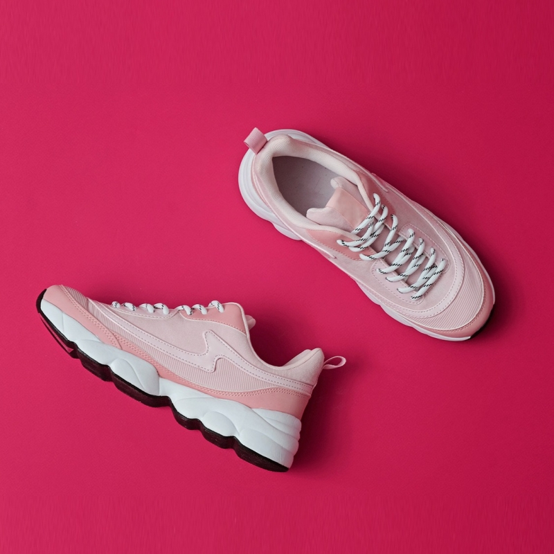 • A pair of Pink walking shoes, has regular Styling, lace-ups detail