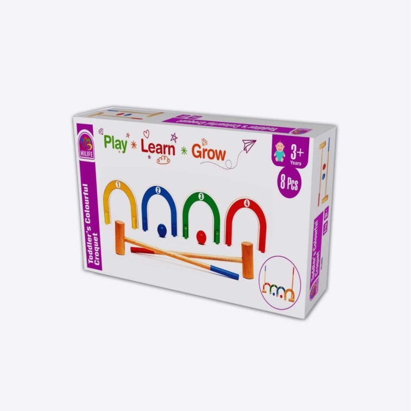 This 8-piece colourful croquet set made from non-toxic, safety-tested and kids-friendly material.