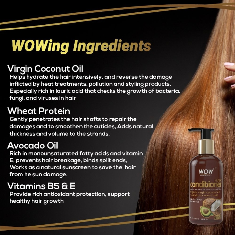• Wow Hair Conditioner incorporates certified bio actives wheat protein, virgin coconut oil, avocado oil, sweet almond oil, castor oil, jojoba oil and arga oil to ensure maximum performance. Ideal For Men & Women